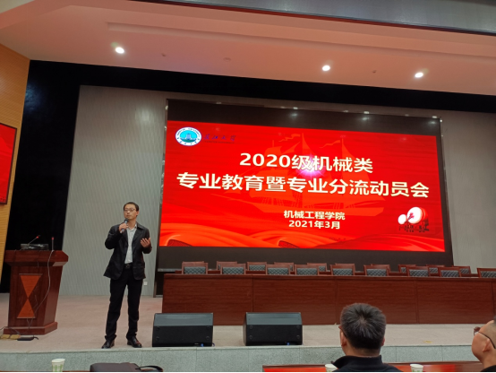 2021年3月30日,为让2020级机械类学生充分了解机械学院专业分流情况,我院于西校区农科大楼1058报告厅召开2020级专业教育暨专业分流动员会。吕志鹏副院长、竺正海副书记、机电工程系主任李宁、过程装备系主任张慢来、材料工程系副主任李欢、教学办门朝威老师及2020级机械类专业全体学生参加此次会议,活动由辅导员向如老师主持。
