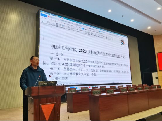 会议伊始,三位系主任依次对专业进行介绍。对于机械设计制造及其自动化专业,李宁博士介绍道:机电专业重实践,并设有“卓越计划”实验班,采用特殊人才培养模式。李欢博士对材料系进行介绍,该专业刚获批湖北省一流本科专业,师资力量雄厚,注重教学质量,考研较易,就业前景广。张慢来博士介绍道,过程装备与控制工程专业以石油机械和装备为特色,对口研究生专业范围广。门老师介绍专业分流选拔方案。