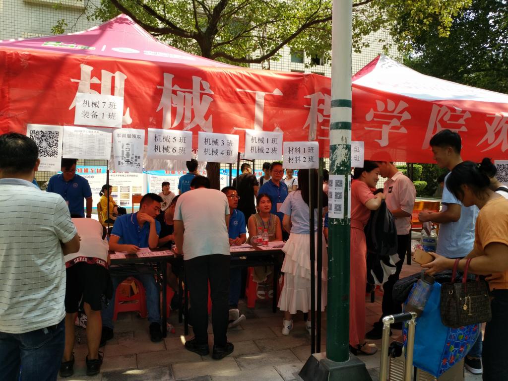 “我家孩子超过1.9米,有没有大床?”,一位家长着急地来到报到点询问。学院党委副书记竺正海在了解实情后,迅速向学校相关部门反映,在得到可以妥善解决的答复后,家长脸上露出了微笑。