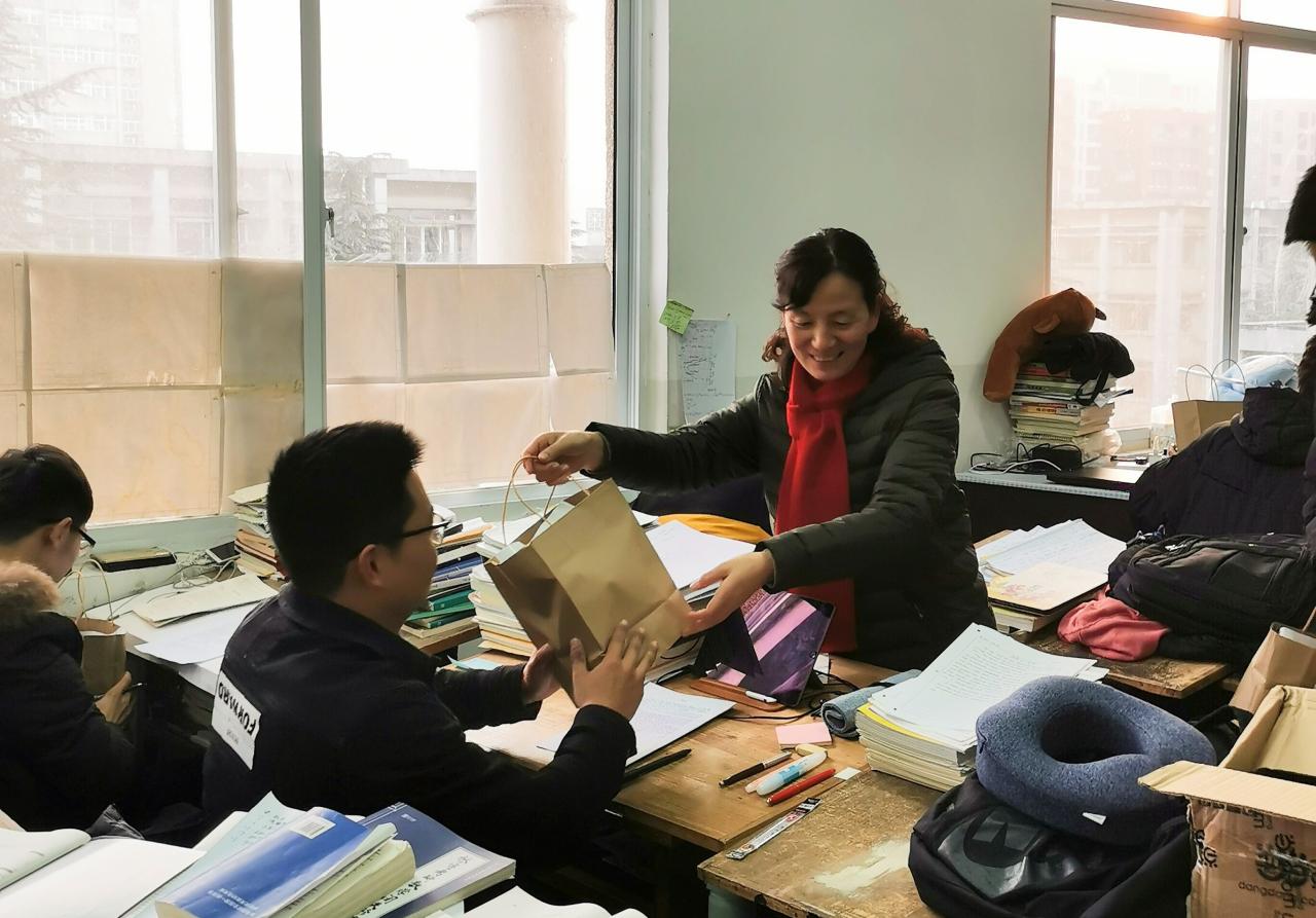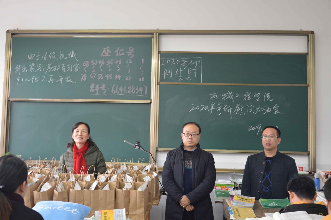 “考前清苦,你已坚持。考中沉着,决不言弃。相信自己,机械挺你!”12月19日下午,在5教505考研自习室,2020届机械考研学生们认真翻看着精美的慰问卡,脸上露出微笑。学院院长管锋、党委书记王红艳、党委副书记竺正海,辅导员杨琴、王喆、刘冬冬、向如等老师参加慰问活动。