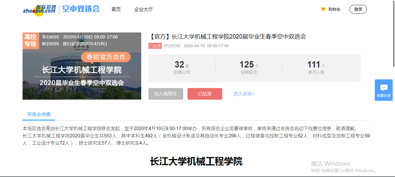 今年,新冠肺炎疫情给毕业生就业工作带来严峻挑战,为最大限度减轻疫情对毕业生就业工作的影响,我院制订了详细的就业工作和就业帮扶方案,创新招聘模式,保障就业服务不断线,每月一次集中特色招聘活动,在三月线上双选周的基础上,联合智联招聘精心组织了本次2020届毕业生春季“空中双选会”。