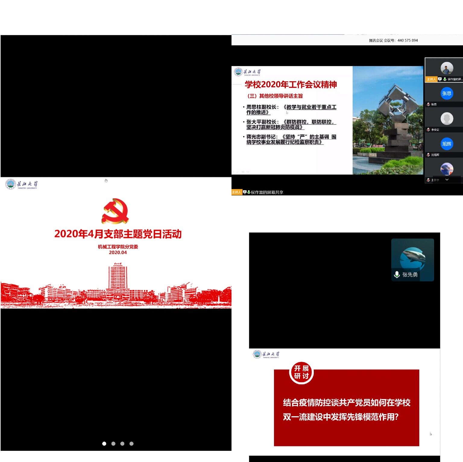 2020年04月16日下午两点半,beplay全方位手机移动平台各党支部开展了4月支部主题党日活动。本次活动以“深入学习贯彻习近平总书记关于疫情防控工作的重要讲话和指示精神,落实学校2020年工作会议精神”为主题,由各支部书记主持。