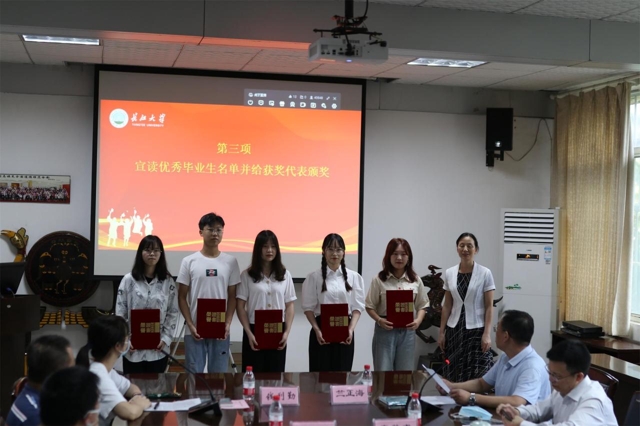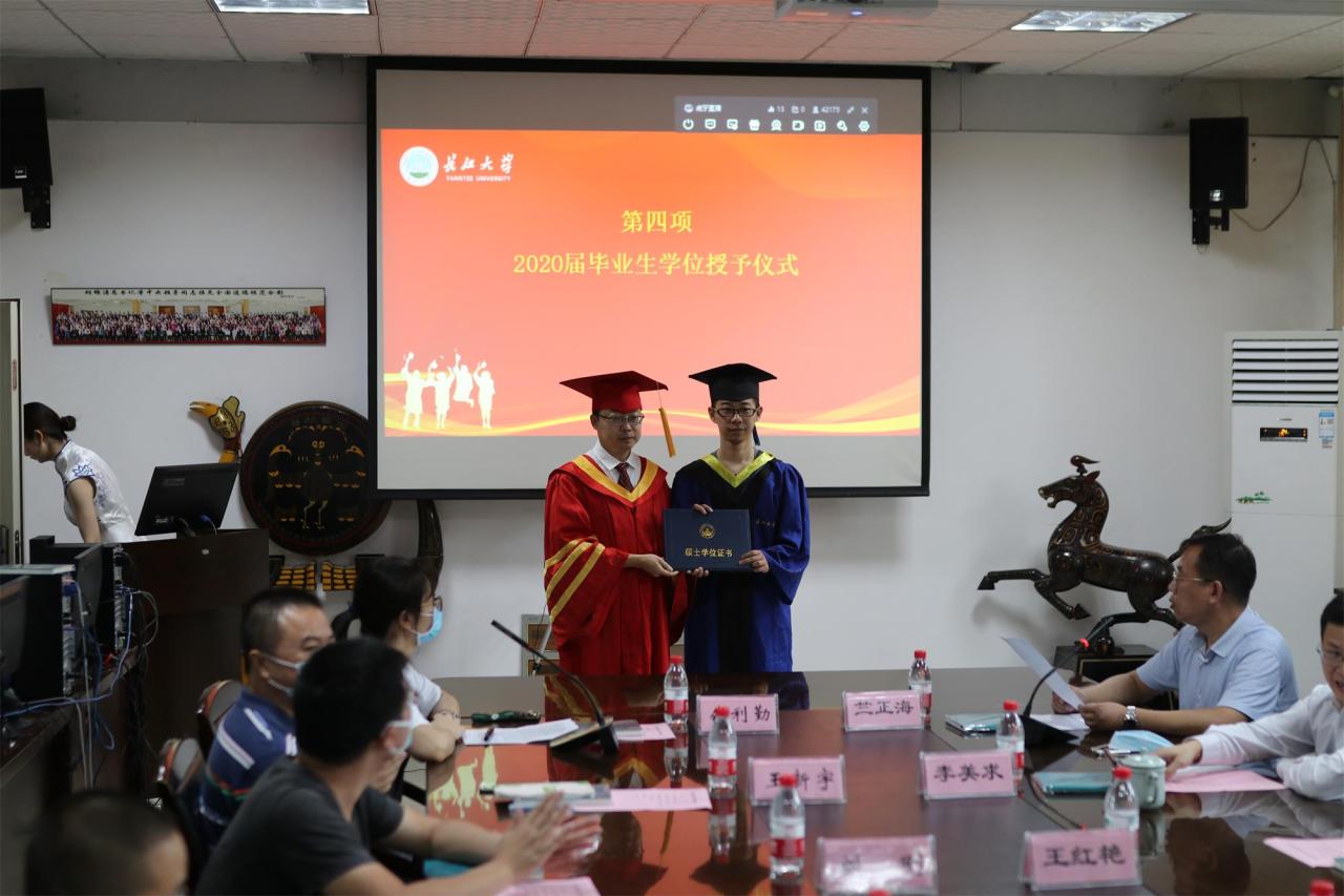 典礼在奏唱国歌中拉开帷幕。副院长吕志鹏通报关于2020届学生毕业资格及学位授予资格审核情况,副院长李美求宣读49名优秀毕业生表彰文件,党委书记王红艳为优秀毕业生代表颁奖,院长管锋代表全院师生致辞。