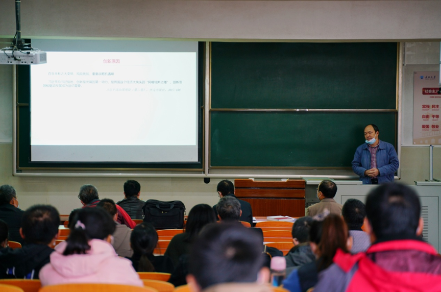 “《习近平谈治国理政》第三卷中习近平总书记对创新高度重视,仅‘创新’一词在书中出现729次。”姜学勤以深厚的理论功底、独到的思想见解、严密的逻辑联系精心解读“创新”内涵及意义,对与会人员全面准确理解用党的创新理论武装党员干部教育人民群众精神实质具有重要指导作用。报告中,他围绕“创新”所面临的内部制约因素和外部挑战进行深入的分析,希望大家深刻认识创新思想在各个领域开展工作的重要性,着力培养高校学生的创新意识和创新能力。