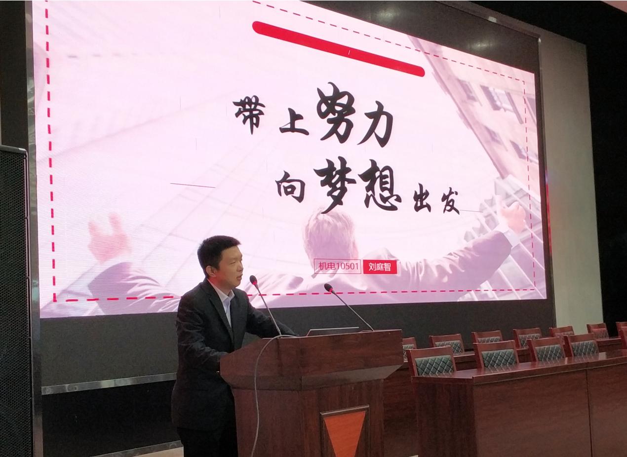 校友刘庭智受邀为2020级全体新生作励志报告。