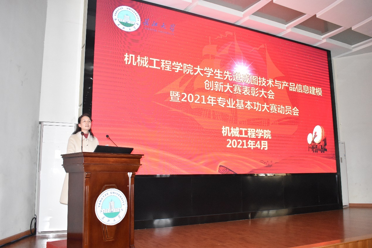 会上,党委书记王红艳表示新时代对人才创新能力十分需要,先进成图技术与产品信息建模是机械类学生的基本功,鼓励学生积极参加各类创新创业大赛。