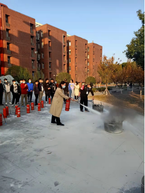 演练前,王书记强调了本次活动是提高广大师生们消防应急能力的重要培训,她指出现代大学生应具备基本消防和逃生技能等自我安全保卫能力。接着,燕科长向大家讲解了大学生宿舍、实验室消防隐患如何排查,介绍了灭火器的种类、及不同火源的灭火方法,强调了常用干粉灭火器的性能与使用技巧,现场演示了初起火源的扑灭方法,提醒了同学们火灾面前人员如何疏散、撤离等现场安全保卫方法。