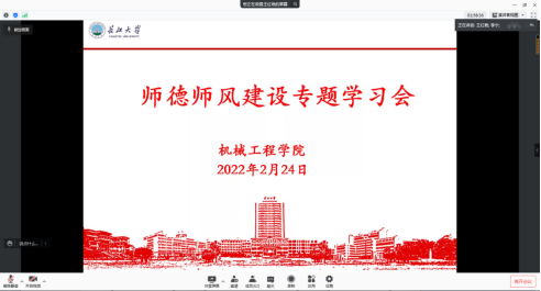 围绕争做“四有好老师”、当好“四个引路人”、坚守“四个相统一”,王书记结合师德师风建设专题教育,通过带领大家学习《新时代高校教师职业行为十项准则》、《高校教师师德失范行为处理的指导意见》和《长江大学师德师风失范行为处理办法》文件的重要内容和精神,全面深入的阐述了稳步推进“四个一”的重要性。并希望青年教师牢记为师者的基本遵循,即“明道信道、立德垂范、业精善学、敬业爱生”。