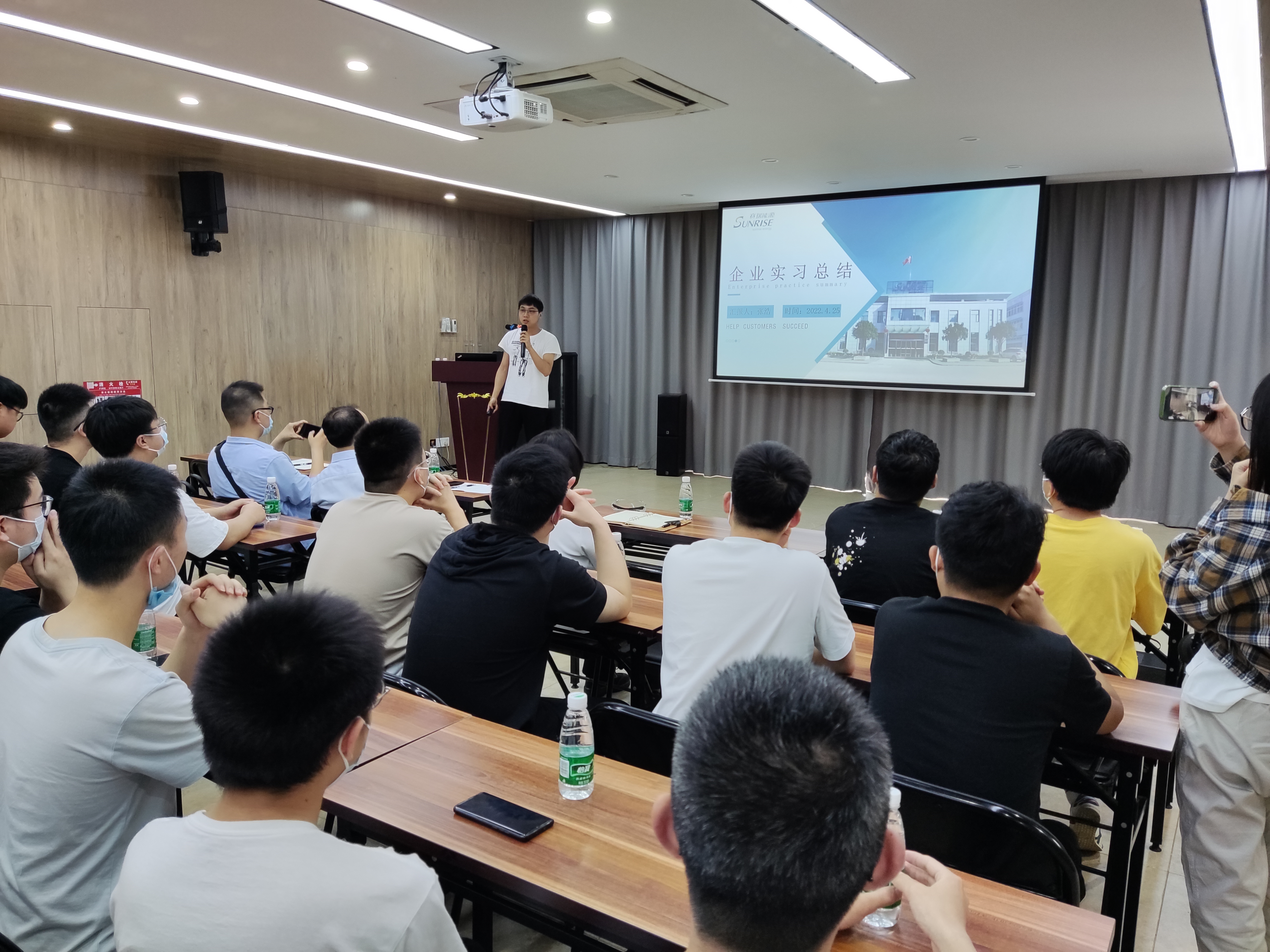 在该公司实习的我院机械卓越18级廖伦和张浩同学,给大家汇报了在企业的实习情况。他们从实践和生活出发,讲述了实习期间的成长和进步。王琼对他们实习期间的工作给予了高度评价,以行业前辈身份对全体同学的就业、学习、生活等方面给予了宝贵的意见,并与同学们进行了深入的交流。管锋肯定了两名同学取得的成绩,号召同学们学习企业敢闯、敢创、敢上的勇气,为今后在企业工作打好基础;同时也表达了进一步加强校企合作、实现双赢的愿望。