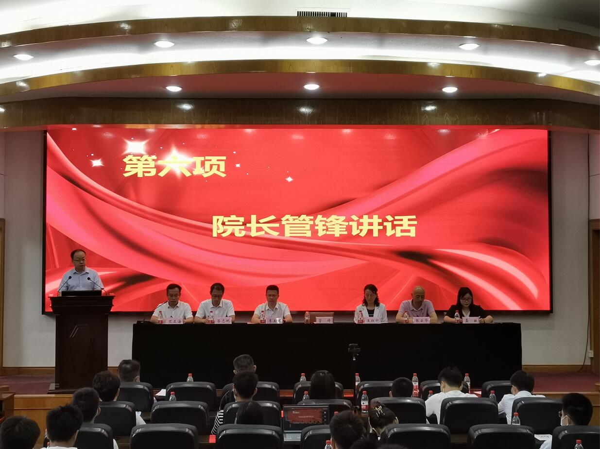 毕业生代表杜帅龙感谢学院的培养和老师的教诲。他表示,毕业不是终点,而是起点,常怀感恩之心,不忘母校,做一个有理想、有担当的新时代青年。