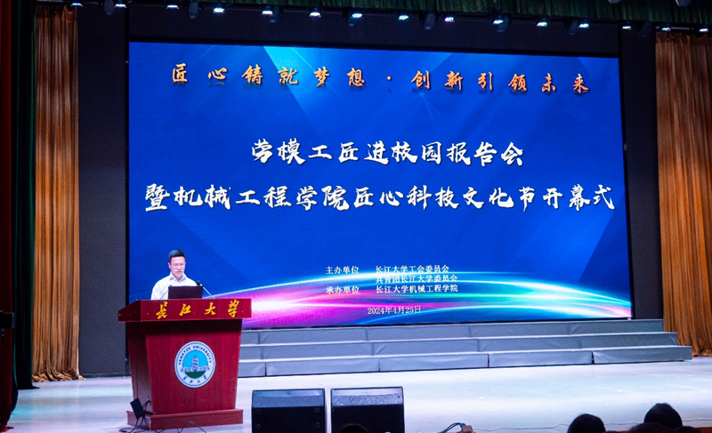 (通讯员 吴钐 胡月 高雨 /文 成材欣/摄)4月25日,劳模工匠进校园报告会暨beplay全方位手机移动平台匠心科技文化节开幕式在东校区大礼堂隆重举办,全国劳动模范孙野,校工会、校团委、研究生院、本科生院、党委学生工作部相关负责人,睿而曼智能科技(北京)有限公司、湖南比邻里科技有限公司总经理以及beplay全方位手机移动平台千余名师生参会。活动由beplay全方位手机移动平台党委副书记丁明霞主持。
