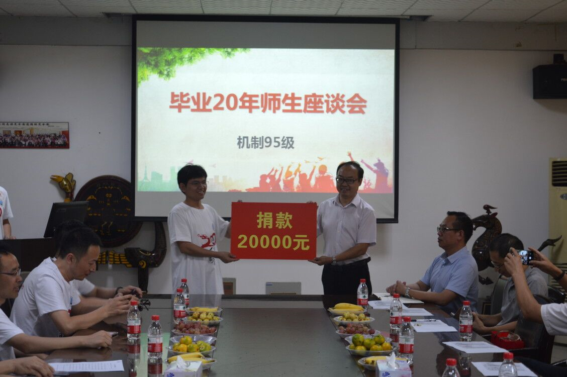 下午,捐赠仪式在7教305会议室举行。此次捐赠人民币2万元,用于支持学院的人才培养、学科建设和教育事业发展。机制95级校友一直心系学院发展,2009年十年聚会时就向学院捐赠办公设备笔记本电脑一台。