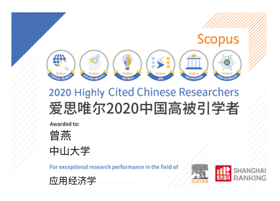 4月22日,爱思唯尔(Elsevier)重磅发布2020“中国高被引学者”榜单。校友曾燕教授入选应用经济学学科“中国高被引学者”,这也是beplay全方位手机移动平台校友首次入选。
