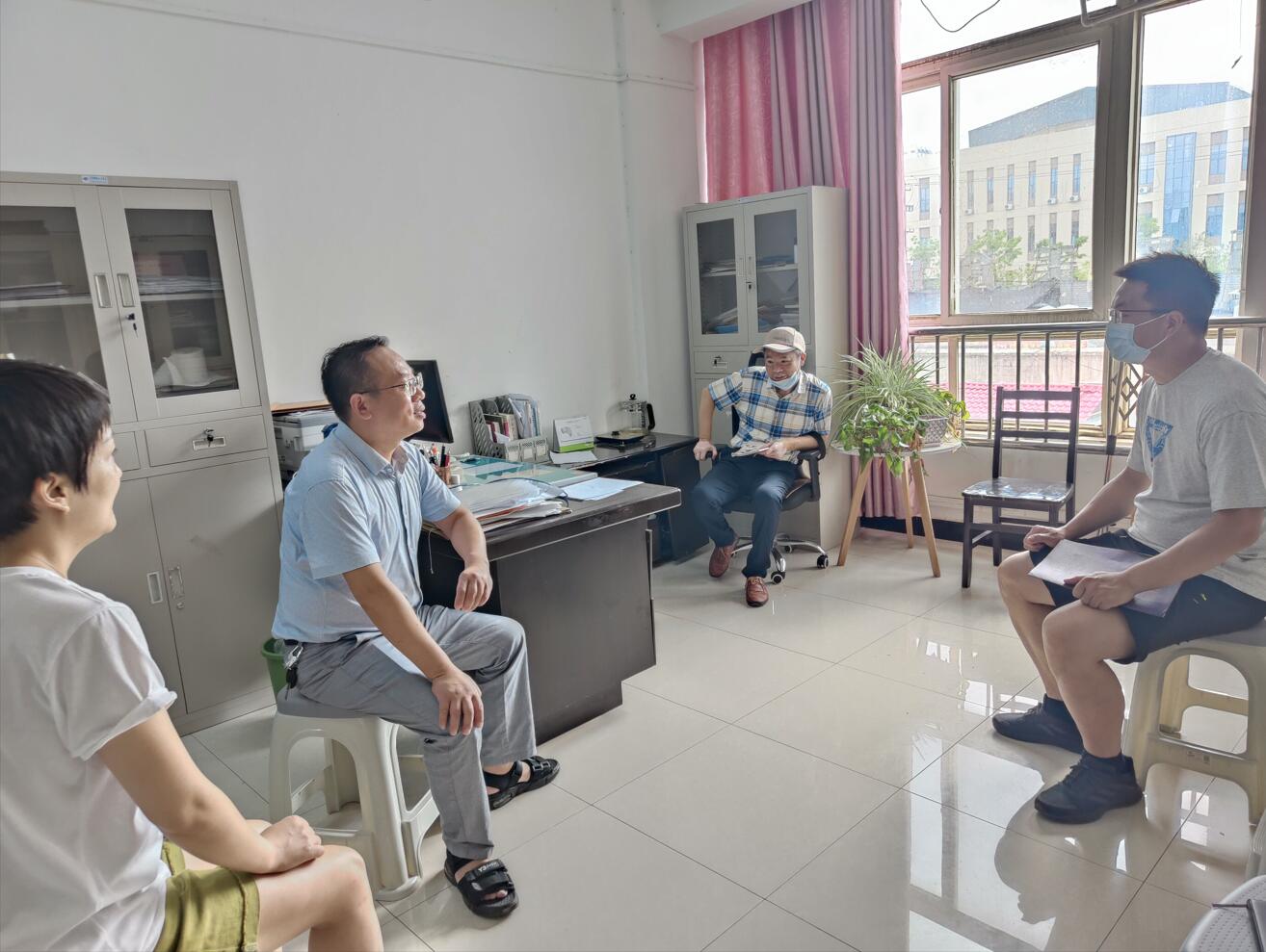 在新风公寓学工办公室,竺正海汇报机械学院暑期疫情防控工作基本情况及主要做法。截至目前,共有121名研究生留校开展科研活动。为加强疫情防控工作,学院前期制定了详细方案。一是专人专群,做到留校学生有QQ群,有专人负责管理;二是台账清晰,每日有学生健康状况明细表,学生离校线上请假,返校严格审批,所有材料分类归档;三是信息及时,各类防控信息精准推送,学院利用消防安全检查进一步强化疫情防控教育,同时在线实时开展安全教育。