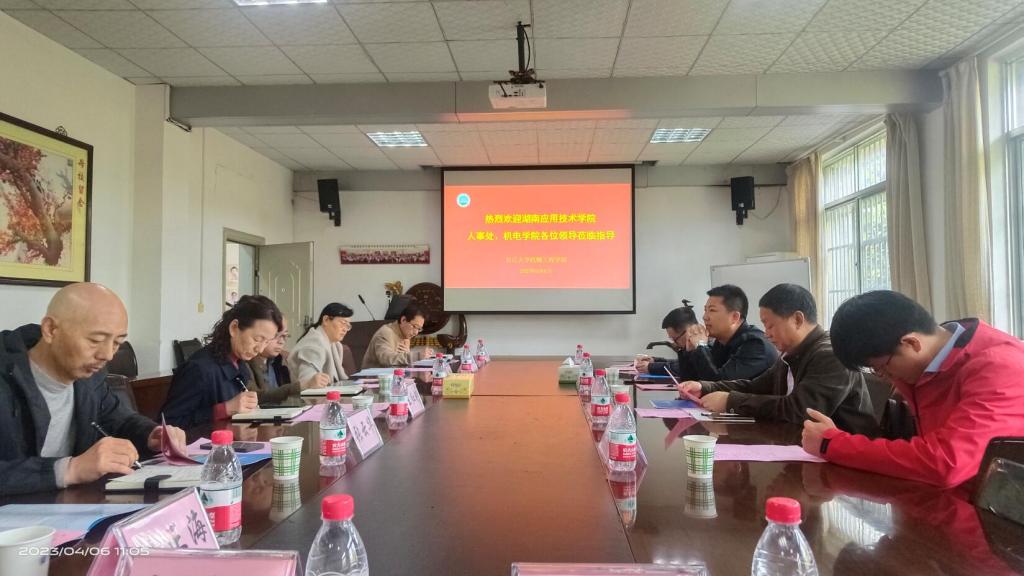 (通讯员 门朝威)4月6日上午,湖南应用技术学院人事处处长李波、机电工程学院院长徐小兵一行来beplay全方位手机移动平台洽谈就业招聘工作。电子信息学院孙祥娥、beplay全方位手机移动平台院长管锋、党委书记王红艳、副院长李美求、吕志鹏、张云华、副书记竺正海及院办主任门朝威参加座谈会,会议由管锋主持。