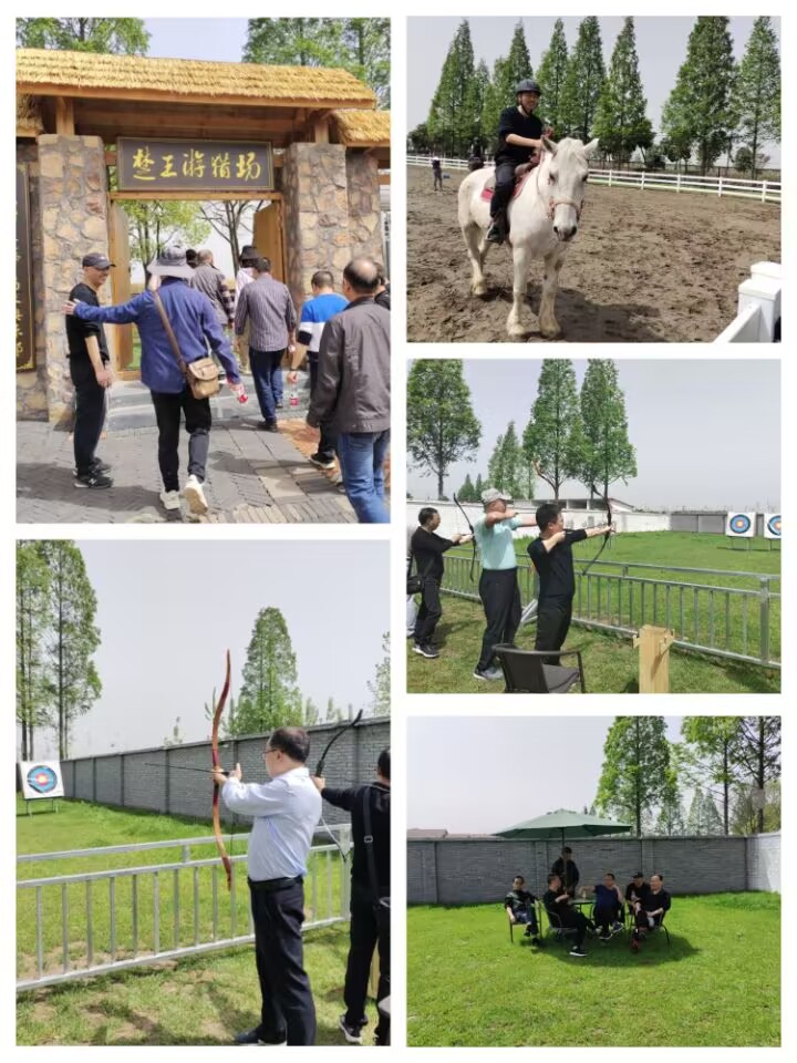 上午,到达楚王游猎场后,大家便各自忙碌起来。有的在骏马上驰骋、铁蹄生风,体验“马背上的快乐”;有的弯弓搭箭,气定神闲,命中靶心便欢呼雀跃;有的三三两两闲聊,或是围桌而坐,侃侃而谈;还有的进行素质拓展,小心翼翼,惊险刺激。