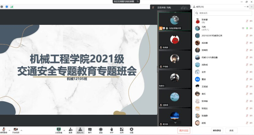 辅导员、班主任们通过线上线下相结合的方式召开交通安全教育主题班会,普及交通安全法规、分享交通事故典型案例、引导学生们互动讨论等形式,加强对步行、骑车、乘车、水上交通安全等教育,帮助学生们牢牢树立“安全出行,文明交通”的思维理念,自觉遵守交通法规,维护交通秩序,真正做到一名遵法、守法、懂法的大学生。