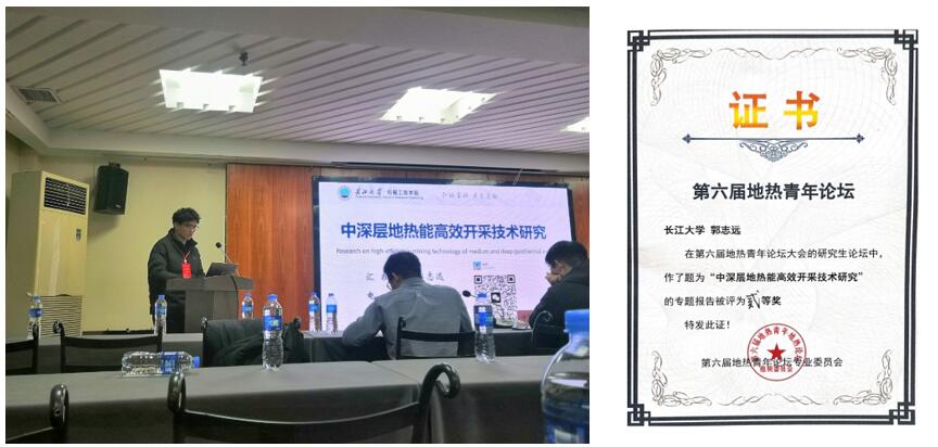 会上,我院2022级硕士研究生郭志远作了题为“中深层地热能高效开采技术研究”的分会场学术报告,并对中深层地热能高效开采研究做了展望,研究内容得到专家学者的关注。报告被评为二等奖。