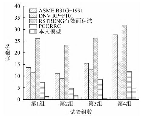 该论文采用油管中经典理论模型ASME—B31G—1991、DNVRP—F101、RSTRENG 有效面积法、PCORRC和该论文所建立的模型进行对比,该论文模误差更小,最大误差仅为4.56%,可以有效评价含缺陷连续管极限承载能力,为连续管安全作业提供评价依据。