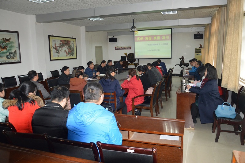 蒋书记首先结合亲身实践和学习心得从五个方面讲解十九大精神内涵:一是大会主题和重大意义,十九大的主题鲜明宣示了中国共产党在新时代举什么旗、走什么路、以什么样的精神状态、担负什么样的历史使命、实现什么样的奋斗目标,具有重要的政治意义、历史意义、理论意义、实践意义、制度意义和世界意义;二是从取得政治成果、精神财富、令人鼓舞的成就、最突出的亮点和最深刻的变化等五点体会来阐述过去五年取得成就是全方位的、开创性的,同时也是深层次的、根本性的;三是从1个总任务、8个明确和14个坚持来深刻理解习近平新时代中国特色社会主义思想,并强调这一思想开辟了四个新境界,即开辟了马克思主义新境界、中国特色社会主义新境界、党治国理政新境界和管党治党新境界;四是准确把握我国社会主要矛盾表述变化的重大政治判断,他从我国社会生产力水平总体提高、人民对美好生活向往程度更加强烈和影响因素等来诠释为什么要做出表述修改,同时强调我国社会主要矛盾的变化既是关系全局的历史性变化,也是对党和国家提出了许多新要求;五是从四个方面把握好中国特色社会主义已进入新时代,强调“新时代”是从党和国家事业发展的角度提出的政治判断,而不是历史学上时代划分的概念。其次蒋书记对院党委下一阶段怎么样去“学”和“做”提出意见和建议,要求在学懂、弄通、做实上下功夫,结合报告中提到的创新型国家、创新意识、绿色发展、优先发展教育事业、立德树人和“双一流”建设等进行专题研讨,内化于心,外化于行,提出切实可行的未来五年、十年的学院发展规划,并扎实推进各项工作。