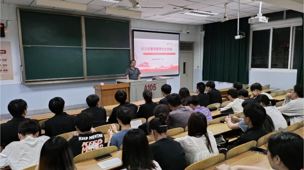 竺正海以“从文化繁荣兴盛感受文化自信”为题,结合习近平总书记关于文化发展道路、意识形态力量、社会主义核心价值观等方面论述,全面介绍新时代中国特色社会主义文化建设。习近平总书记强调:“没有高度的文化自信,没有文化的繁荣兴盛,就没有中华民族伟大复兴。”坚定中国特色社会主义道路自信、理论自信、制度自信,说到底是要坚定文化自信。