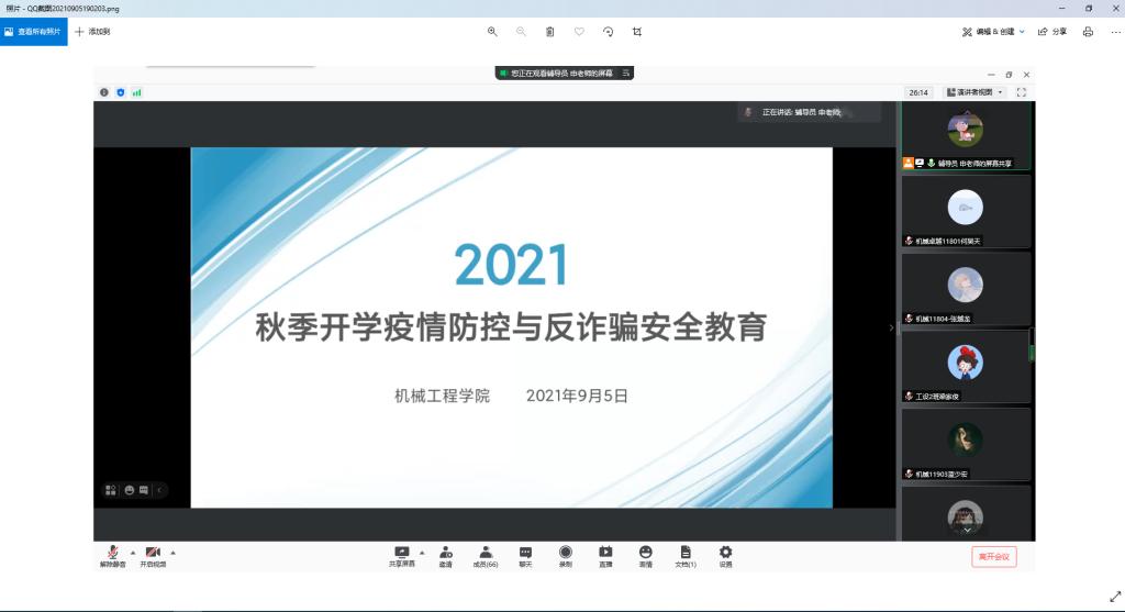 机械学院组织开展2021年秋季开学疫情防控与反诈骗安全教育