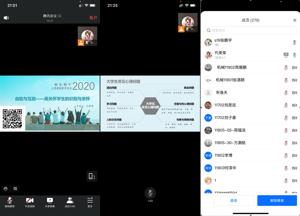 9月22日晚上,beplay全方位手机移动平台开展线上2020年下半年学生骨干干部心理健康教育培训,讲座由辅导员代荣荣老师主讲,全体班长、团支书、心理委员、安全委员和寝室长参加活动。