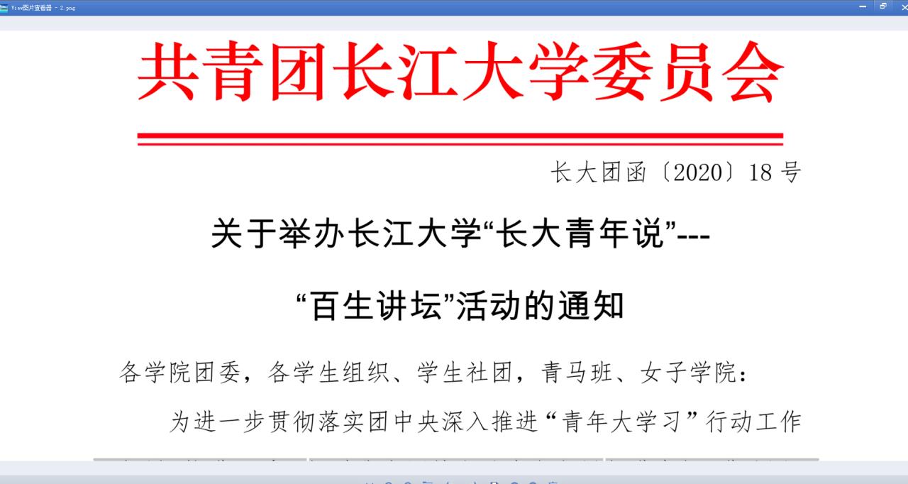 会议最后,团副李雪涵对长江大学“百生讲坛”活动进行了说明,希望各团支书积极动员本班同学参加。