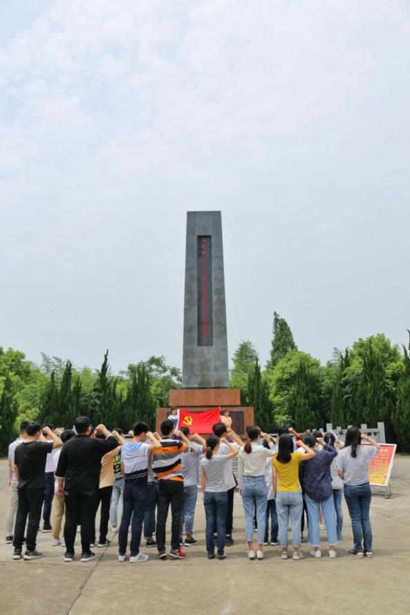 上午11时,集体到达位于湖北省洪湖市西部的瞿家湾镇,参观湘鄂西革命根据地旧址——瞿家湾。下午13时,集体到达湘鄂西苏区瞿家湾革命烈士纪念碑前。在革命烈士纪念碑前,全体支部成员在党支部关明老师的带领下,高举右手,重温了入党誓词,并拍照留念。在庄严肃穆的纪念碑下,支部成员们在重温入党誓词的同时更加坚定了自己作为学生党员的责任和义务,我们应当继承与发扬光荣革命传统,深入学习习近平新时代中国特色社会主义思想,全面发展自己,为建设和谐社会贡献自己的力量,肩负起时代赋予的使命。