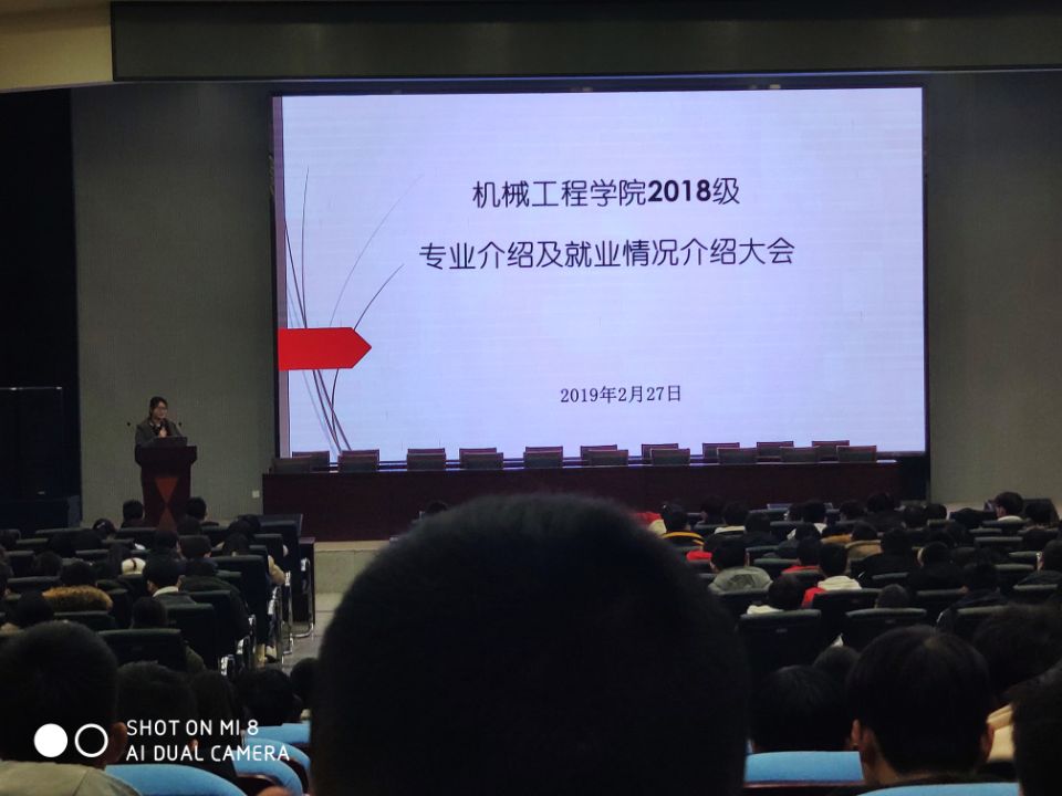 (通讯员:肖简)为解答同学们对机械专业的疑惑,帮助同学们确立自己的大学目标。2月27日晚七时,2018级机械学院专业介绍大会在农科大楼报告厅召开,本次大会有幸请到向如老师和施雷老师为大家介绍机械专业的具体情况以及就业前景,本次大会由唐添琪同学主持。