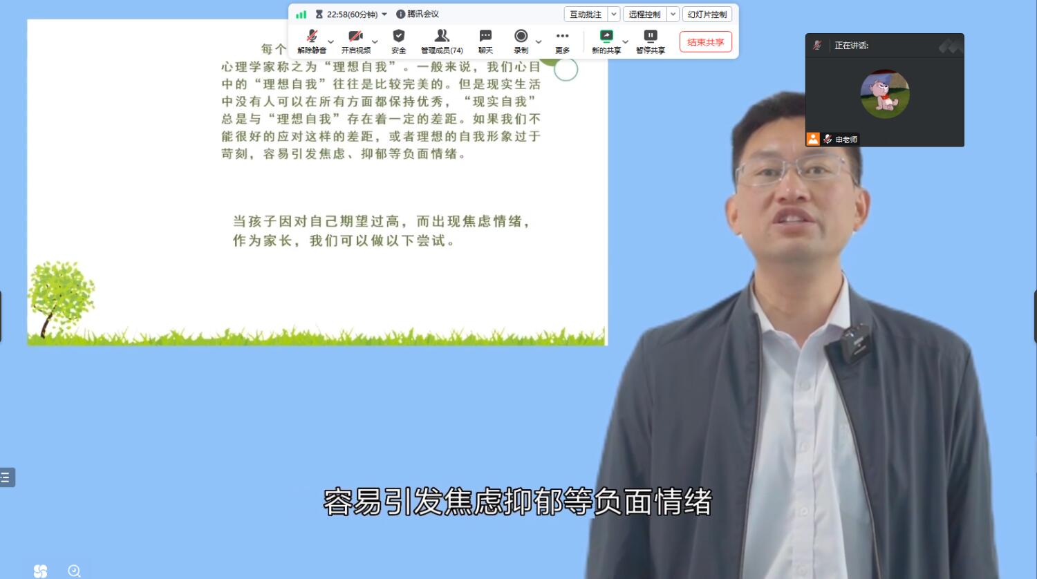 专题心理微课主题家长会上,通过在线方式,机械学院心理专干申旭老师与家长共同学习湖北高校心理健康专家服务队打造的心理微课,并结合日常工作经验分享与学生相处的心得体会,引导家长走进学生心理、关注学生常见心理问题,尊重学生寻求心理帮助的合理需要。