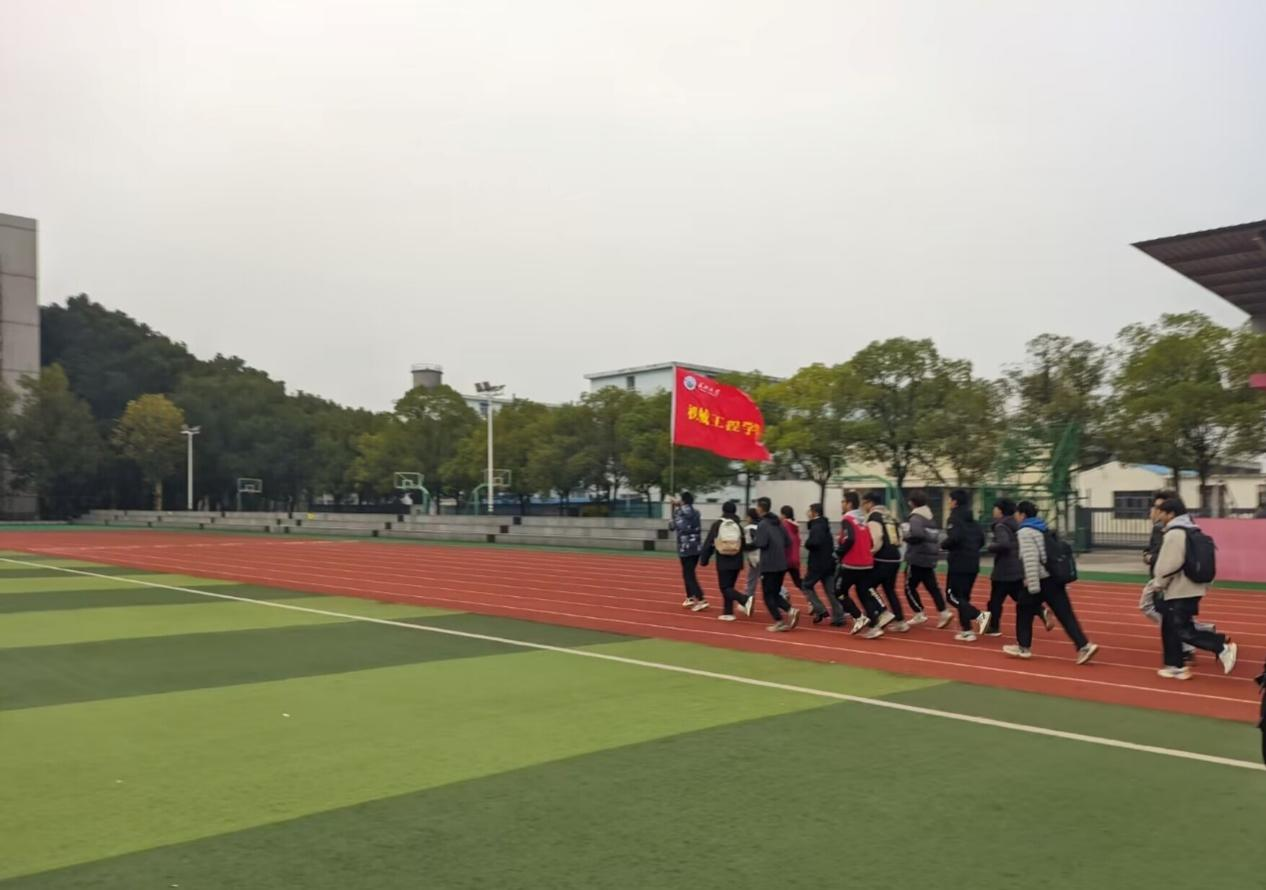 升旗仪式结束,全体学生进行“健康跑”活动。