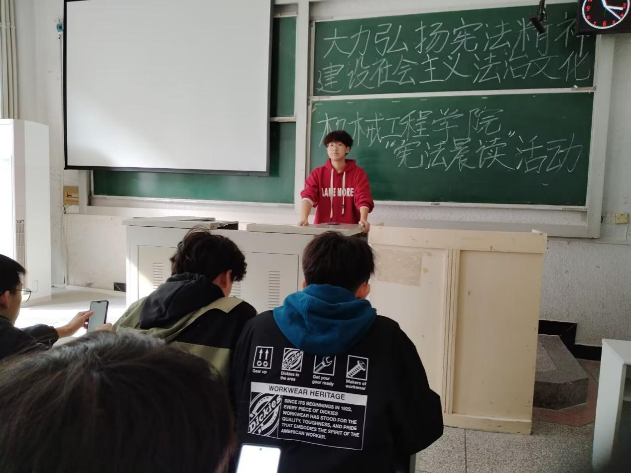 各年级以班级为单位组织学生集体学习宪法、民法典、行政复议法、教育法律法规和未成年人保护、爱国主义教育等相关法律知识,开展《宪法伴我们成长》歌曲传唱与“宪法晨读”活动,引导学生积极参加全国学生“学宪法讲宪法”活动网络学习和“宪法卫士”行动计划,通过多样化的学习宣传活动,让学生更深入地了解宪法,成为学法、知法、守法的新时代大学生。