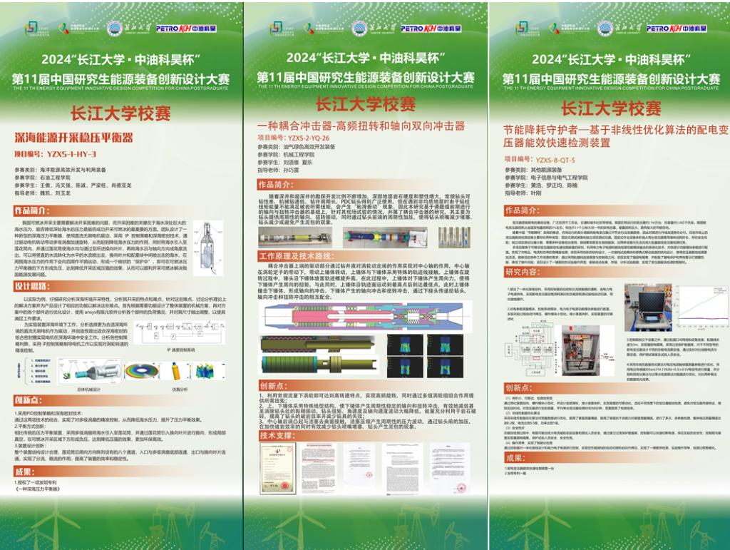 自第十一届中国研究生能源装备创新设计大赛长江大学校赛发布以来,共收到来自于beplay全方位手机移动平台、石油工程学院、地球科学学院、资源与环境学院、电子信息与电气工程学院等10余个学院100余组学院报名参赛,参赛人数400余人次。经初评,最终遴选40余件作品进行线上路演与最终答辩。校赛流程完全参照国赛要求,进行评审答辩,最终拟评选出一等奖、二等奖及三等奖,并推荐国赛。作品涉及海洋能源高效开发与利用装备、油气绿色高效开发装备、新能源制备装备、可再生能源装备、储能与低碳能源装备、热能动力工程装备、高效电力能源装备、其他能源装备、企业命题等。本次大赛若干作品